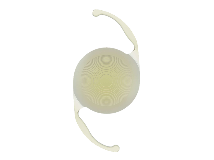屈折型多焦点眼内レンズは、レンズ内に遠距離、近距離それぞれ屈折率の異なるゾーンを設け、光を異なる距離に屈折させる遠近両用メガネのような構造です。比較的自然な見え方が得られ、光のにじみやハロー・グレアが少ないのが特徴です。ただし、特定の照明条件や瞳孔径によっては視界の質が変わることもあり、患者様の目の状態やライフスタイルを考慮して選択されます。