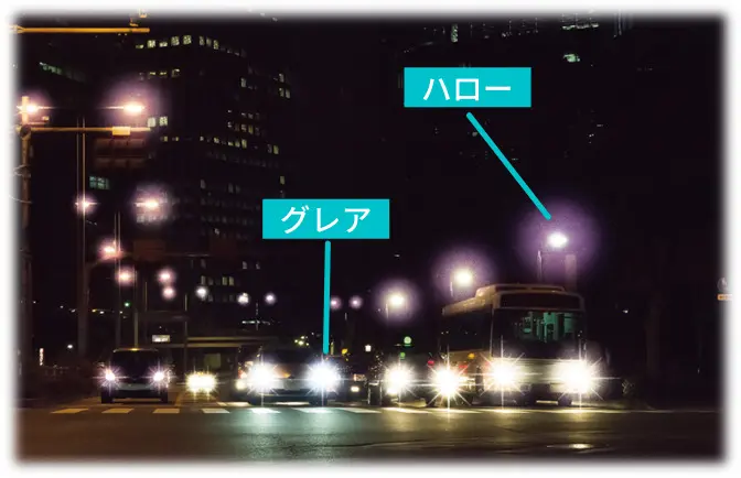 →ハロー・グレア現象への警戒が必要